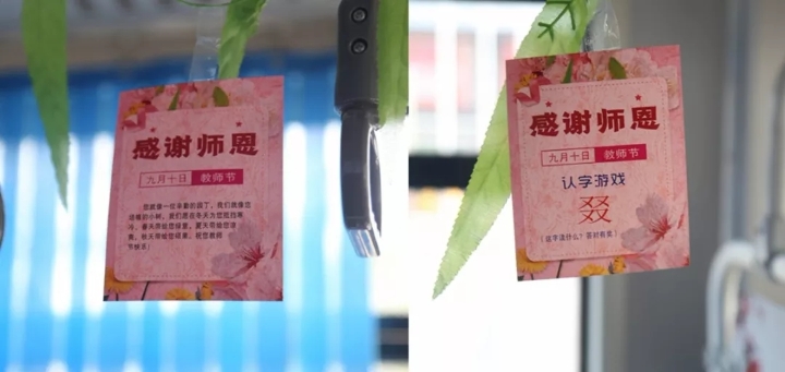 🥀九月10日美术庆祝幼儿老师节,每辆47路公交线车内缀满的生僻字和美术庆祝幼儿老师节祝福的话语信用卡,吸引了了乘坐人们的主要。