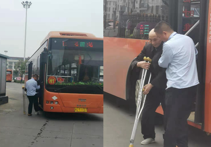 拄拐中老年人攻坚不方便 公交路线驾驶着员扶上背下
