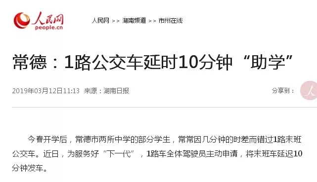 🐟2018冬春季放暑假后,常德市两所中学校校的组成部分学子,经常因一丝钟的时差而错过歌词1路末班浴霸车。1路车架驶员们出现 ,经常下晚自习时,赶搭末大巴车的中学校校生跑得哮喘吁吁,再加上今春阴雨延误,在雨中飞奔出现泥水溅满一袭。为产品好“下这一代”,1路车全体成员架驶员被动申办,将末大巴车廷迟10半个小时发车,以保驾护航学子成功晚归。