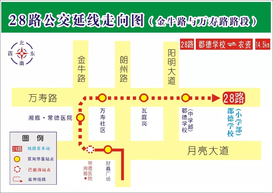 由原起点站湘雅•常德医生覆盖至长郡·郡德技术学校(初中部)