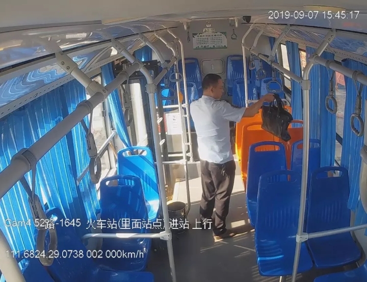 图为52路驾驶证员胡杰峰拾金不昧摄像头载图