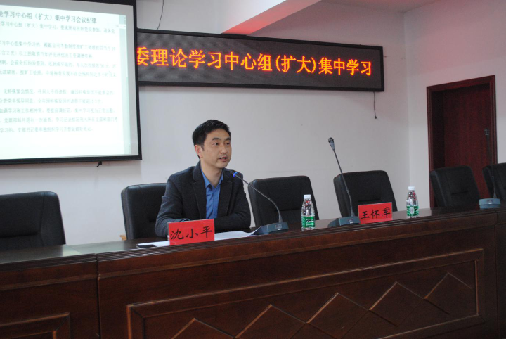 图为平台党委会党支书、董事局长沈小平同学成为会仪并致辞