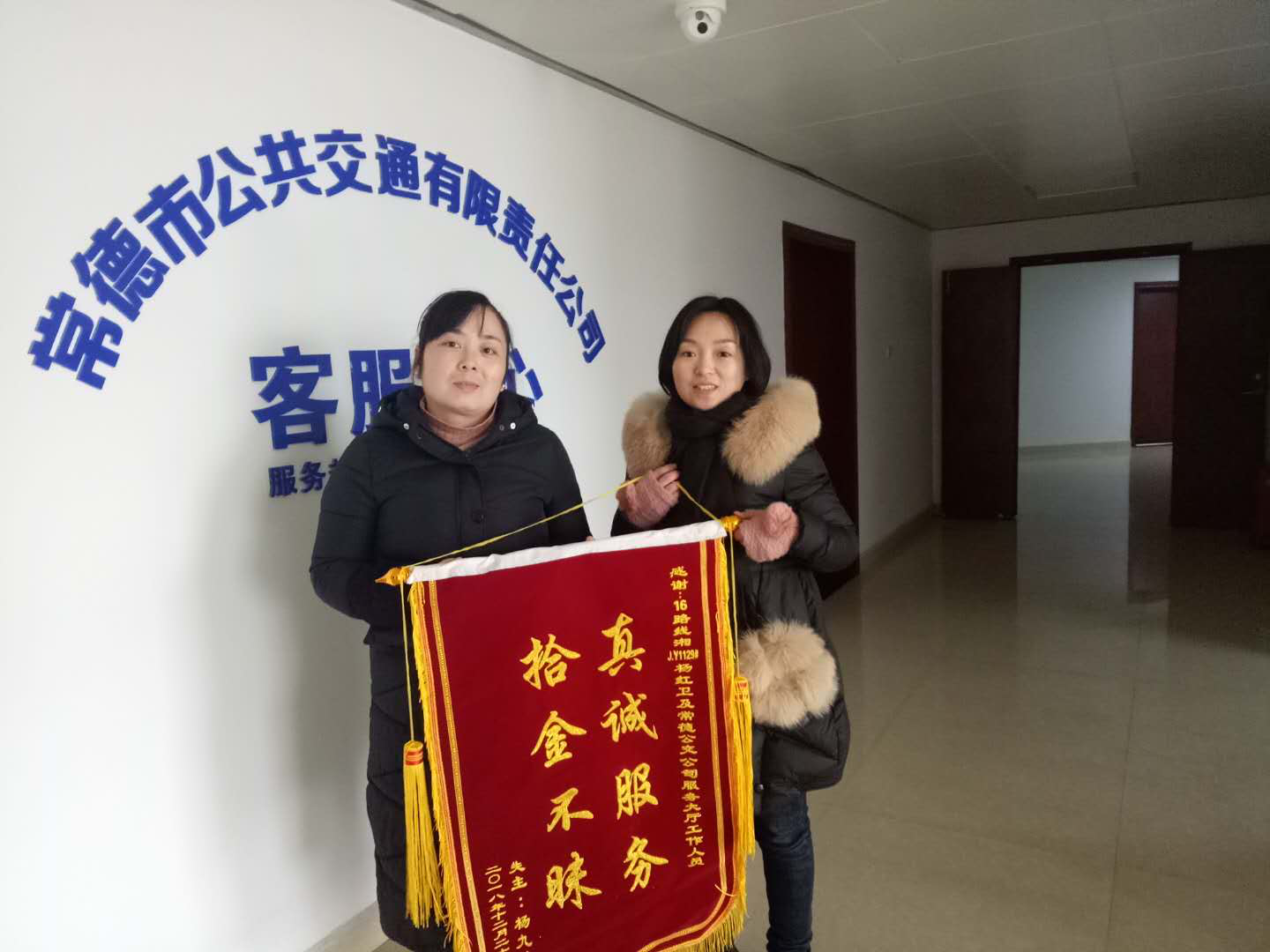 图为失主子女(右)送去多谢送锦旗