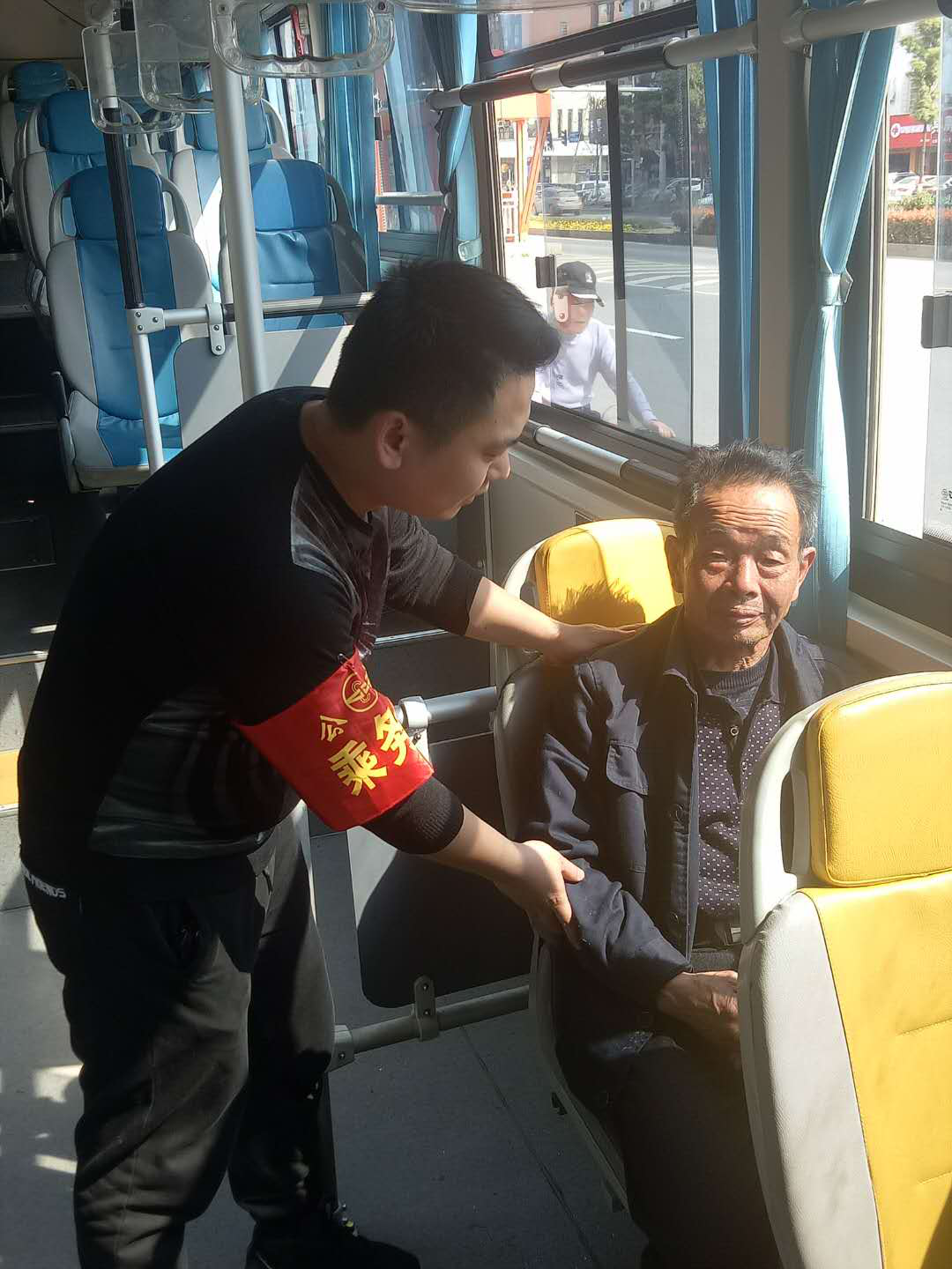 图为公交线路大公司人事部门管理工作人群正相助60岁游客入座