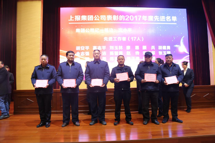 图为2017年度优秀车组人员登台领奖
