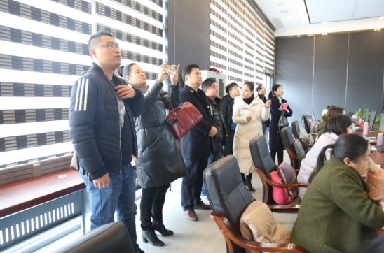图为永州市路车大公司一行人目前在在参观常德智慧云路车指挥手势指挥调度系统中央
